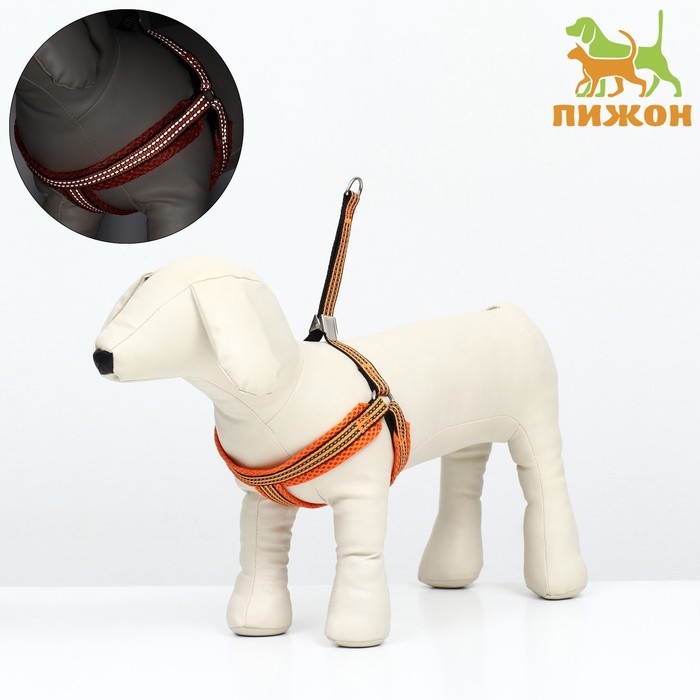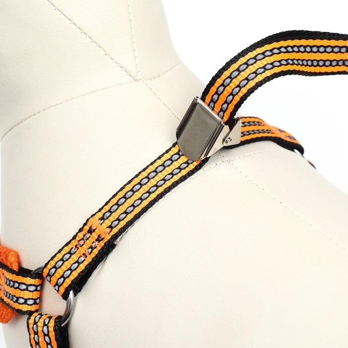 Шлейка супермягкая со светоотражающей прошивкой, размер М, обхват 32-63 см, оранжевая