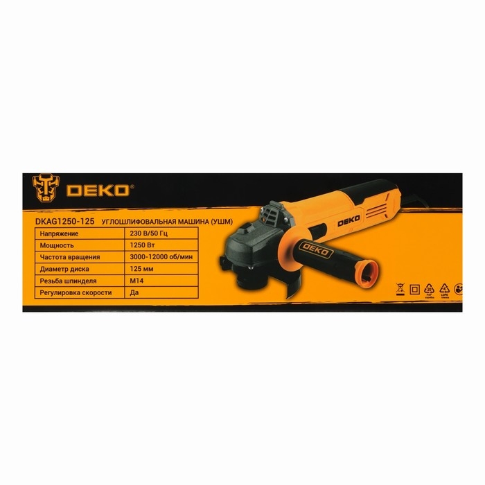 Шлифмашина угловая DEKO DKAG1250-125, 1250 Вт, 125 мм, М14, 3000-12000 об/мин