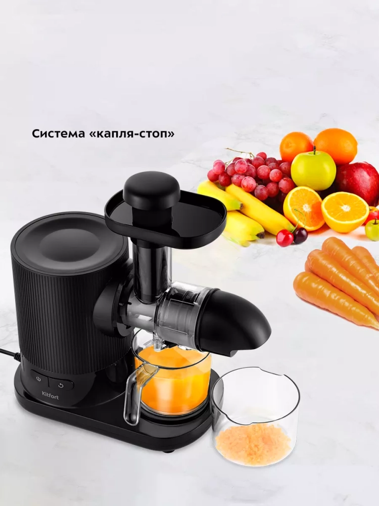 В соковыжималке КТ-1139 предусмотрена система «стоп-капля». Это удобно, практично и к тому же обеспечивает соковыжималке функцию быстрой очистки.