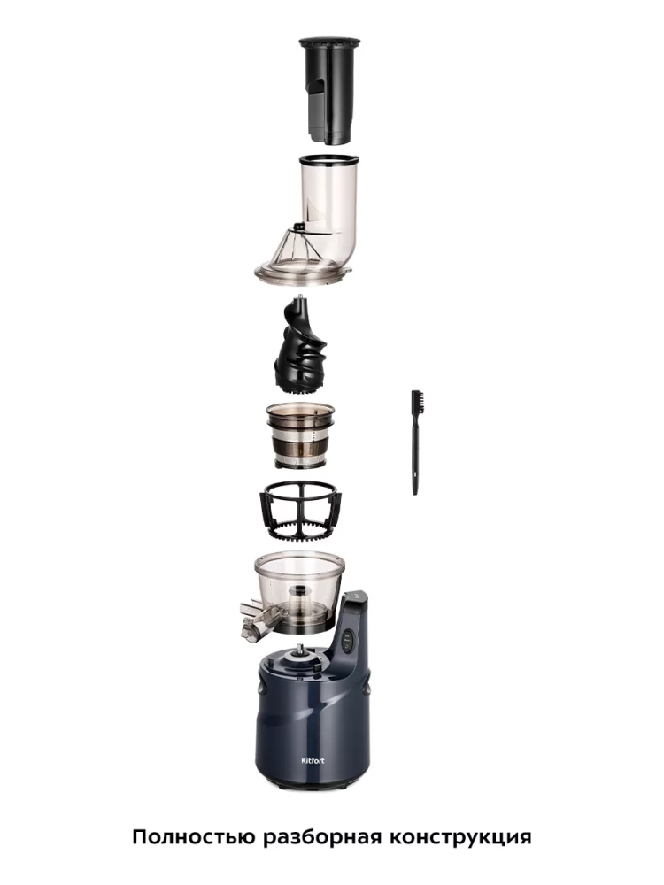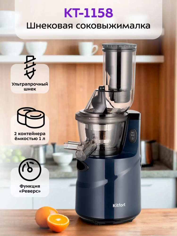 Шнековая соковыжималка Kitfort KT-1158 позволяет отжимать максимально возможное количество сока из фруктов, большинства овощей и зелени с сохранением всех их полезных компонентов: витаминов, аминокислот и минералов. Соковыжималка быстро собирается и легко моется после работы.