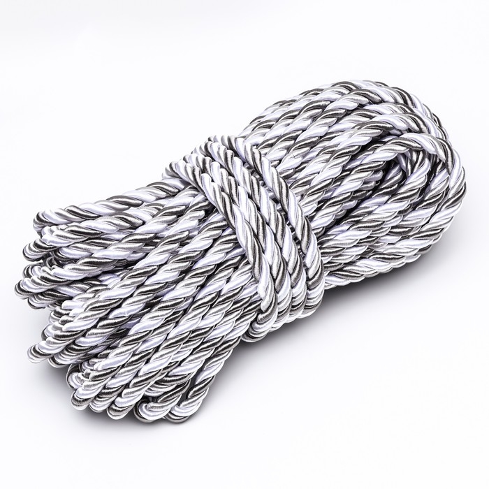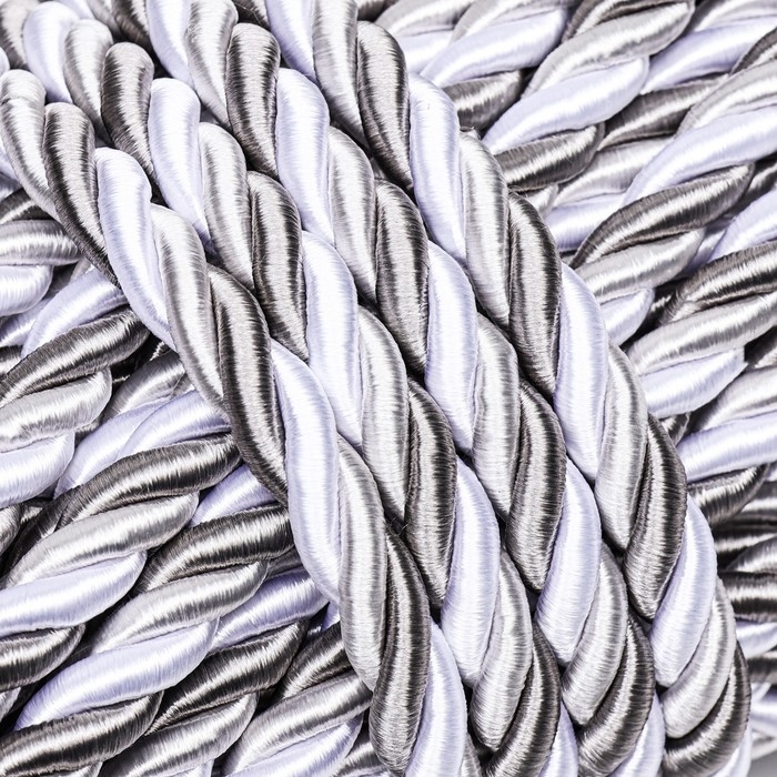 Шнур для декора и отделки, витой, серый, декоративный, без тесьмы, 12 мм х 25 м