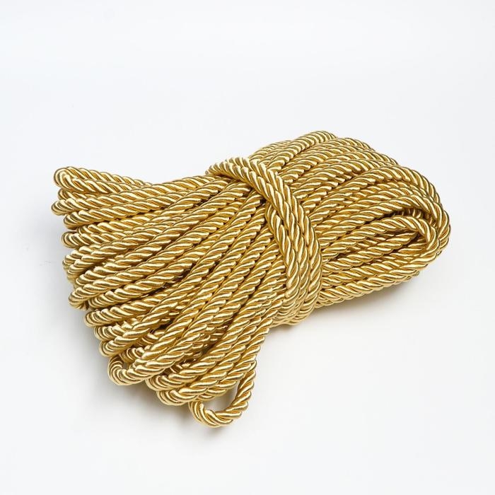 Шнур для декора и отделки, витой, декоративный, золотистый, без тесьмы, 12 мм х 25 м