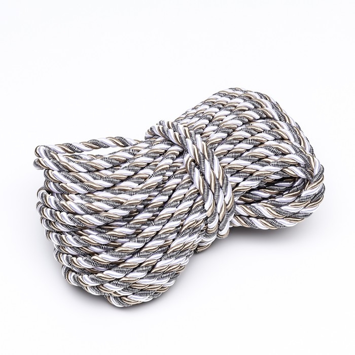 Шнур для декора и отделки, витой, серый, декоративный, без тесьмы, 12 мм х 25 м