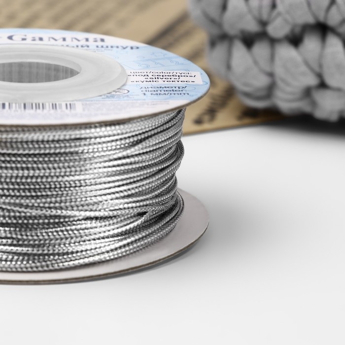 Шнур для плетения, металлизированный, d = 1 мм, 45,7 ± 0,5 м, цвет серебряный