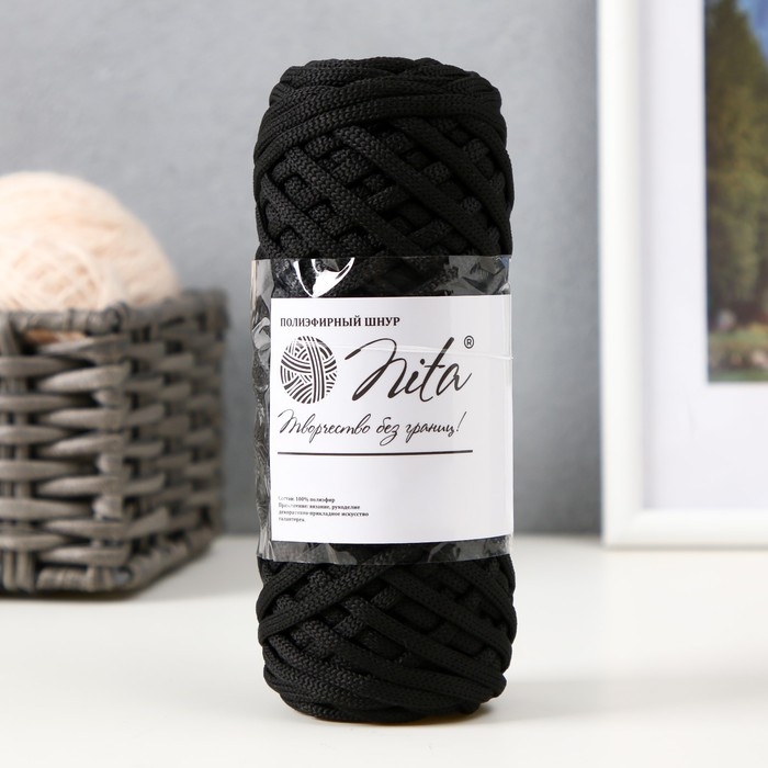 Шнур для вязания 100% полиэфир, ширина 4 мм 50м (чёрный)