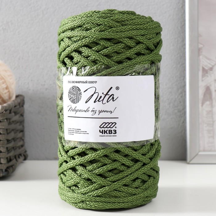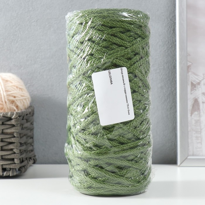 Шнур для вязания 100% полиэфир, ширина 5 мм 100м (оливковый)