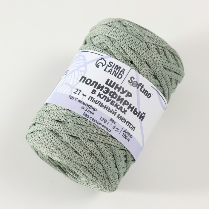 Шнур плоский 3 мм полиэфирный в клубках 100м/170г (+/- 5%) пыльный ментол - 21
