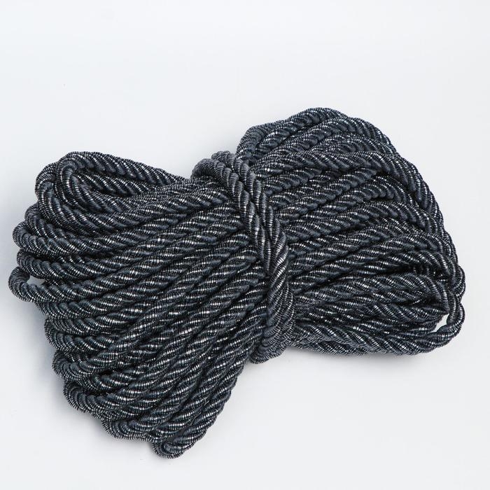 Шнур для декора и отделки, витой, серый, декоративный, без тесьмы, 12 мм х 25 м