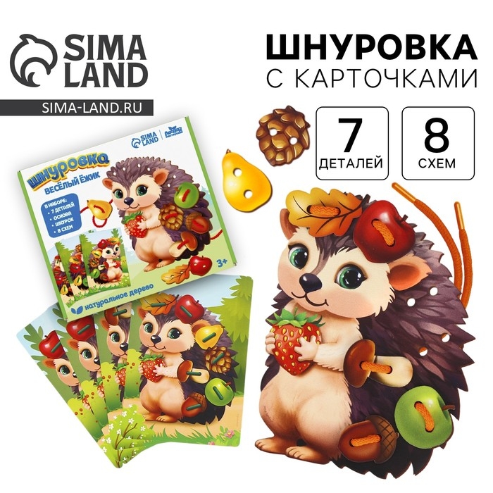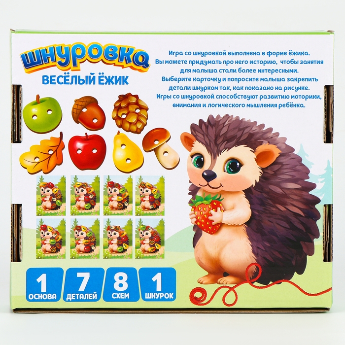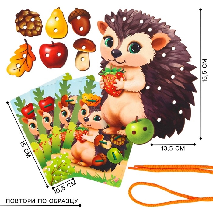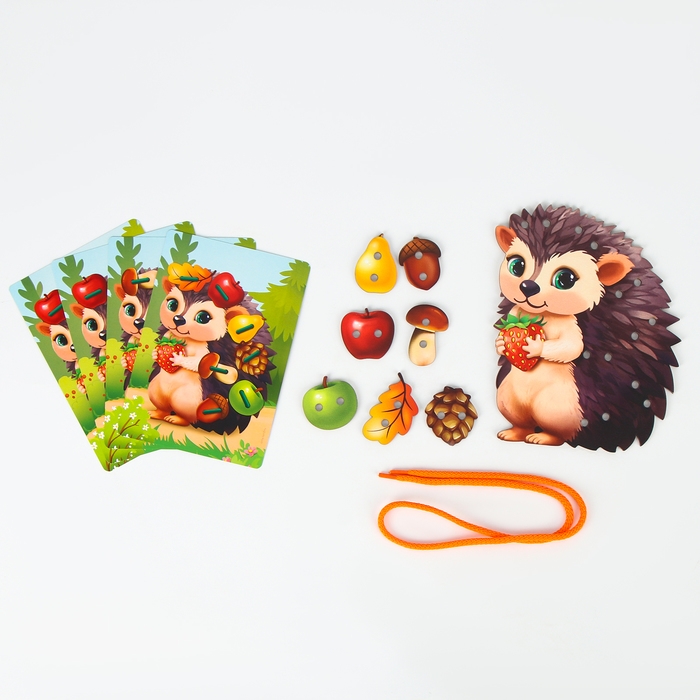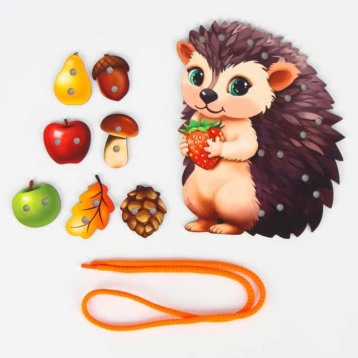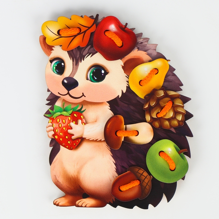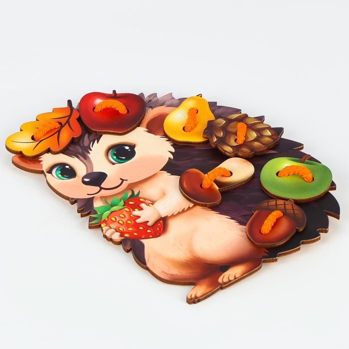 Шнуровка деревянная развивающая для малышей «Весёлый ёжик»