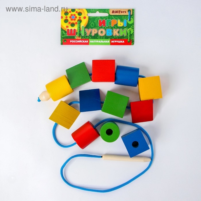 - Развивает мелкую моторику: работа с шнурком и деталями тренирует ловкость, координацию движений и точность пальцев.