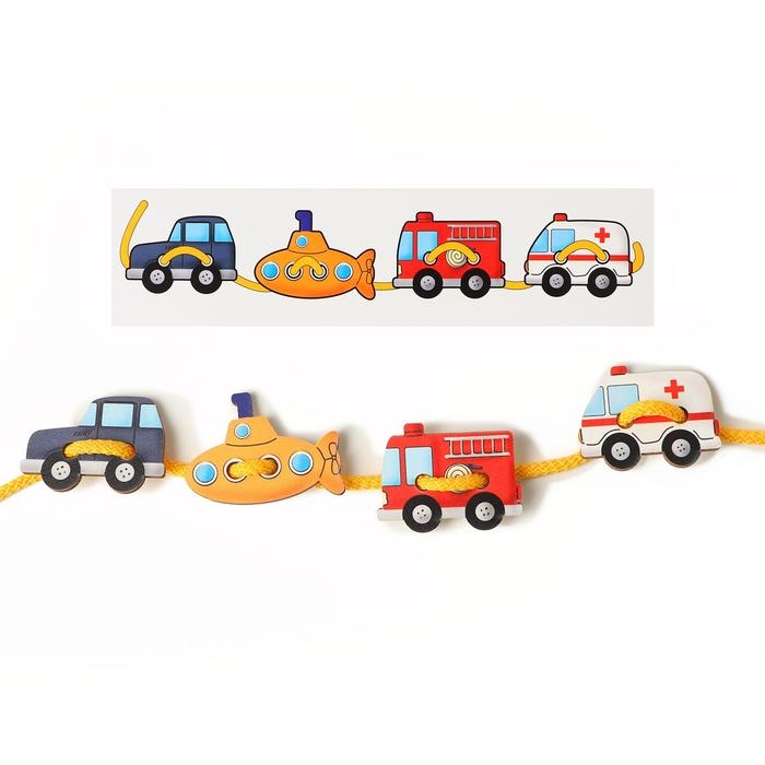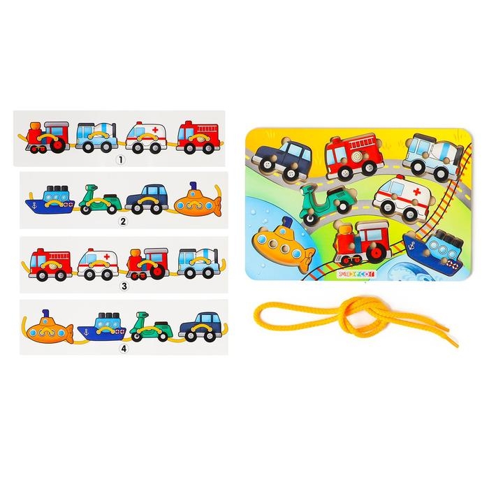 Шнуровка «Транспорт-2» — игра, способствующая развитию различных навыков у детей, таких как зрительное внимание и восприятие, память, интерес к окружающему миру, координацию движений, речь, ловкость рук и мелкую моторику.