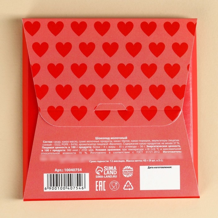 Шоколад молочный «9 причин почему я люблю тебя», 45 г (9 шт х 5 г).