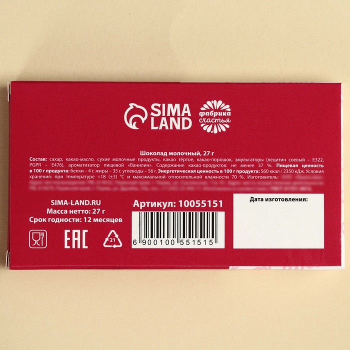 Шоколад молочный «От офисных страданий»: 27 г.