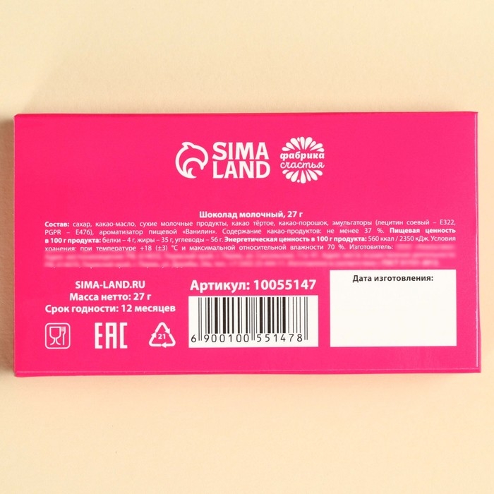 Шоколад молочный «От офисных страданий»: 27 г.