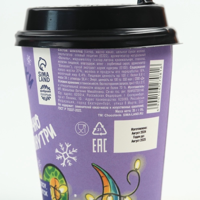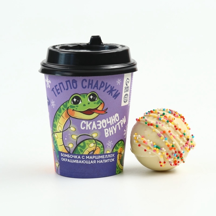 Шоколадная бомбочка с натуральными красителями в стакане "Тепло снаружи"