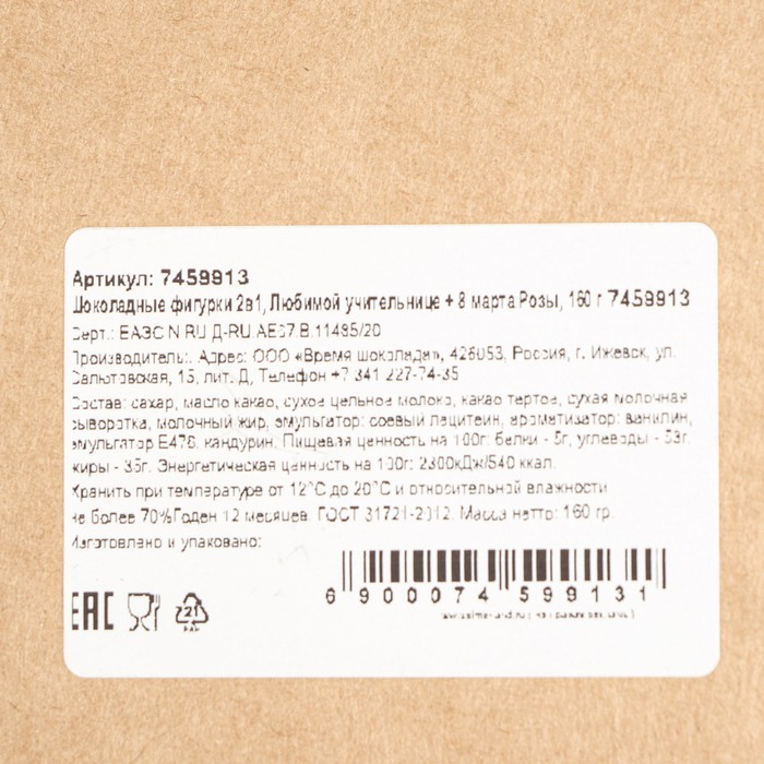 Шоколадные фигурки, 2 в 1 «Любимой учительнице + 8 марта. Розы», 160 г