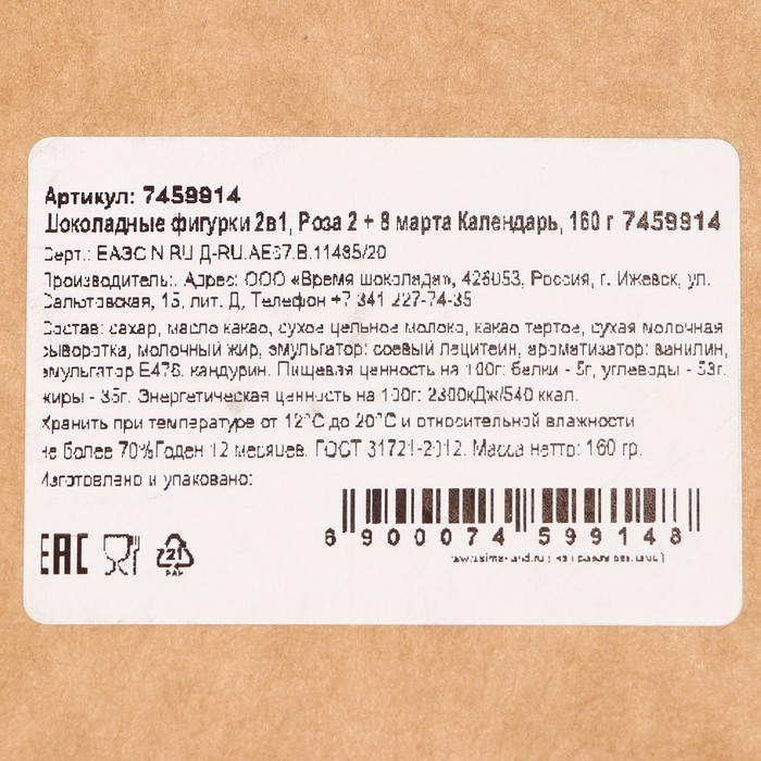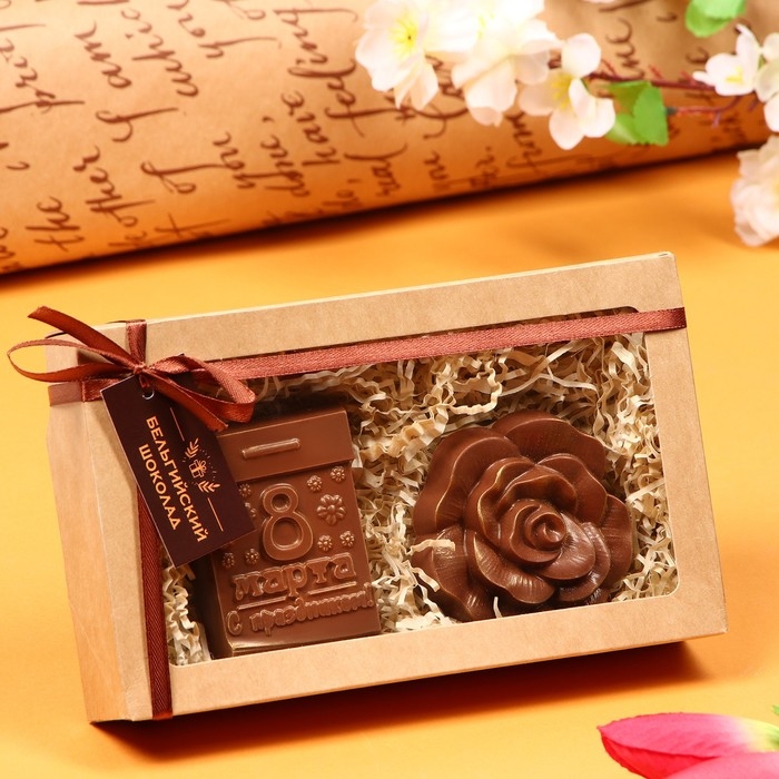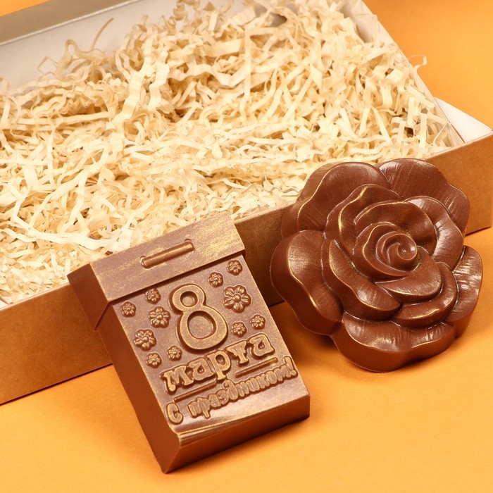 Шоколадные фигурки, 2 в 1 «Роза 2 + 8 марта. Календарь», 160 г