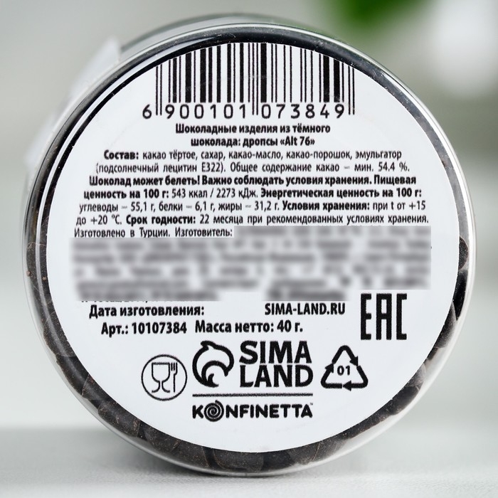 Состав: какао тёртое, сахар, какао-масло, какао-порошок, эмульгатор (подсолнечный лецитин Е322).