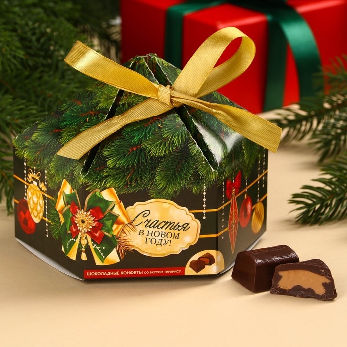 Шоколадные конфеты в коробке «Счастья в Новом году», вкус: тирамису, 200 г.