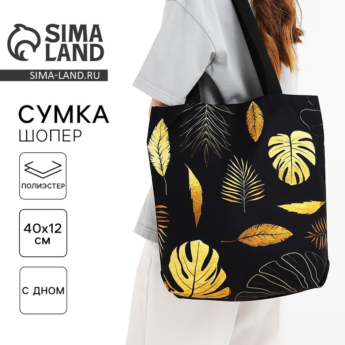 Шопер "Листья", 40х12х38 см, цвет чёрный