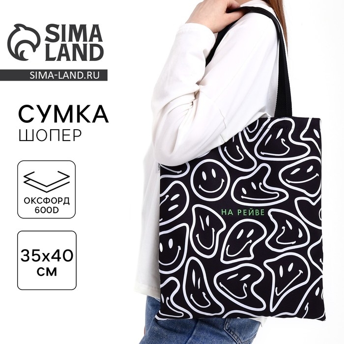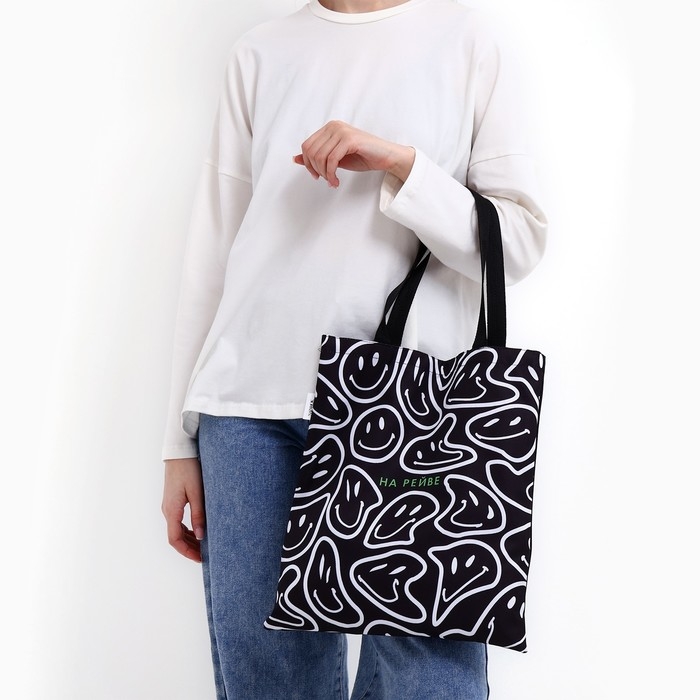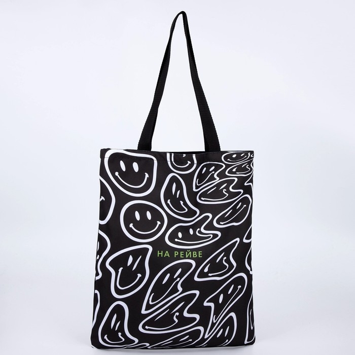 Шопер На рейве без молнии, без подклада, цвет чёрный