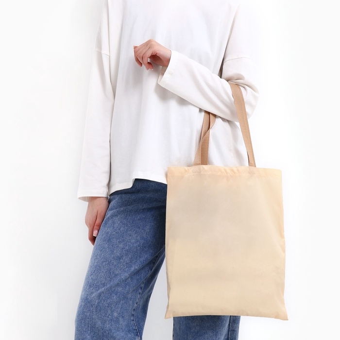 Шопер однотонный, 35х0.5х40 см, текстиль, без подклада, бежевый