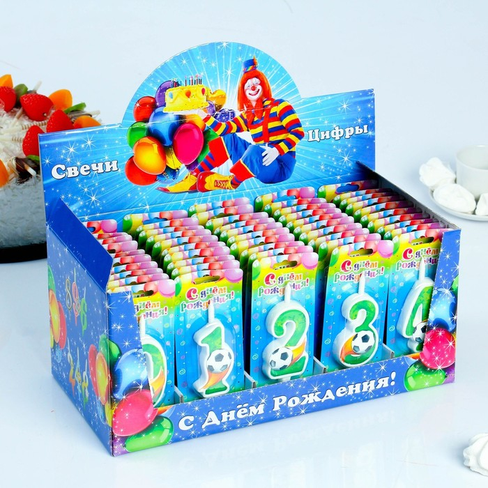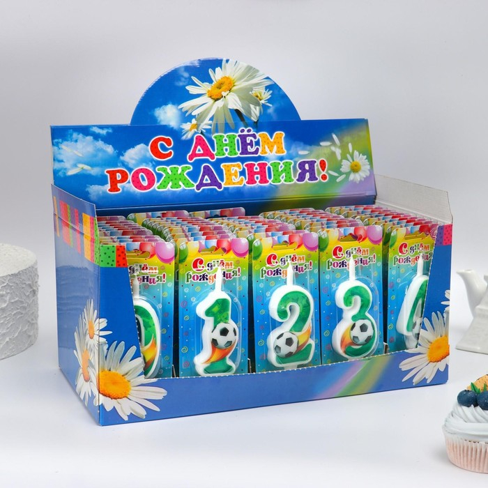 Шоу-бокс со свечами для торта цифры "Футбол", 10, 2 см, 50 штук