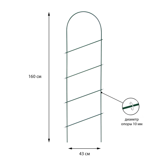 Шпалера, 160 × 43 × 1 см, металл, зелёная, «Линия»