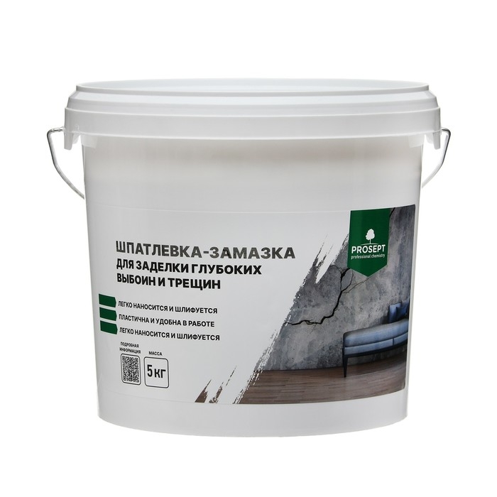 Шпатлевка-замазка для заделки глубоких выбоин и трещин PROSEPT Plastix - водно-дисперсионная акриловая шпатлевка для заполнения сколов, щелей, выбоин, штроб и других отверстий в OSB-плитах, древесине, бетоне, кирпиче и штукатурке. Предназначена для устранения дефектов внутри и снаружи помещений, в том числе в местах с повышенной влажностью или периодическим контактом с водой. Шпатлевка обладает высокой адгезией к разным строительным материалам, прочностью, твердостью, водо- и атмосферостойкостью. Легко наносится, распределяется по поверхности и в дальнейшем шлифуется. Может применяться в качестве финишной шпатлевки.