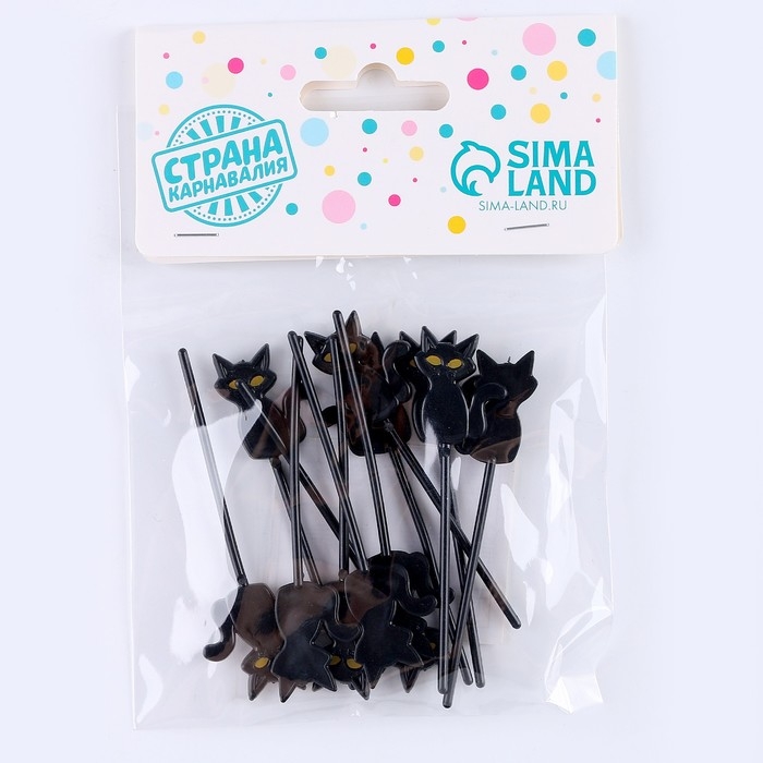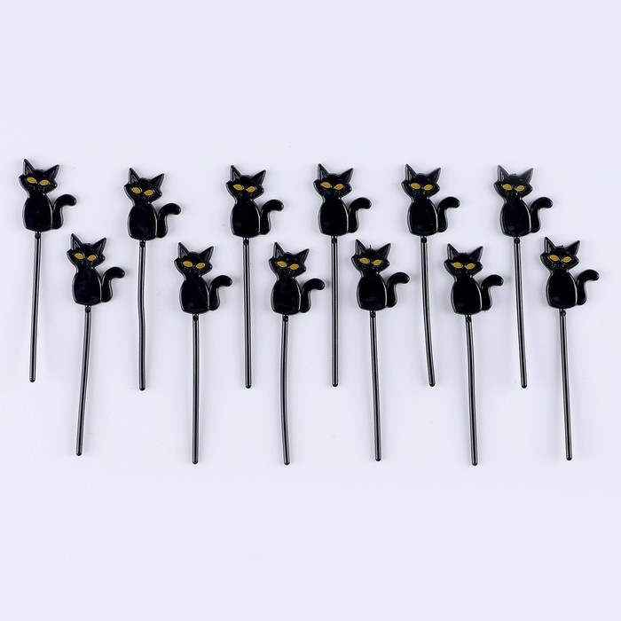 Шпажки «Кот», в наборе 12 шт., цвет чёрный