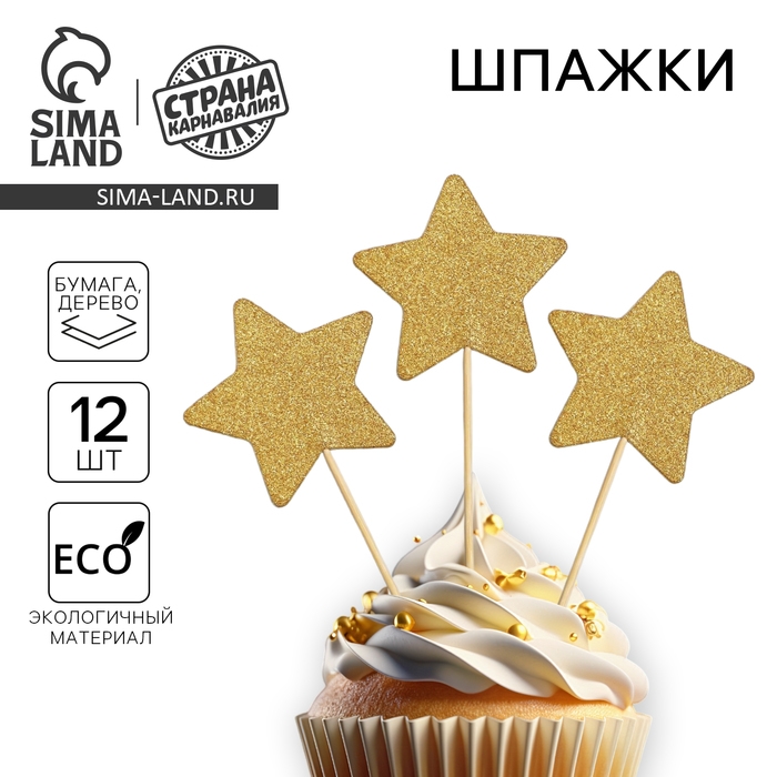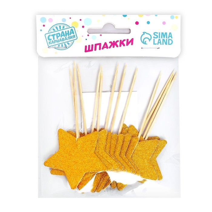 Шпажки «Звезда», набор 12 шт., цвет золотой