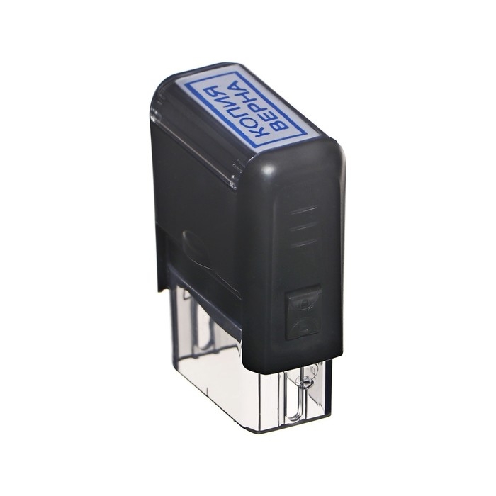 Штамп Colop "Копия верна" будет незаменим в отделе кадров или в бухгалтерии любой компании, а компактный размер позволяет легко оставаться мобильным. Надёжный корпус оптимального размера выполнен из пластика и оснащен с поворотным механизмом, окрашивающим текст. Абсолютно прозрачное основание для удобства размещения штампа на документах.