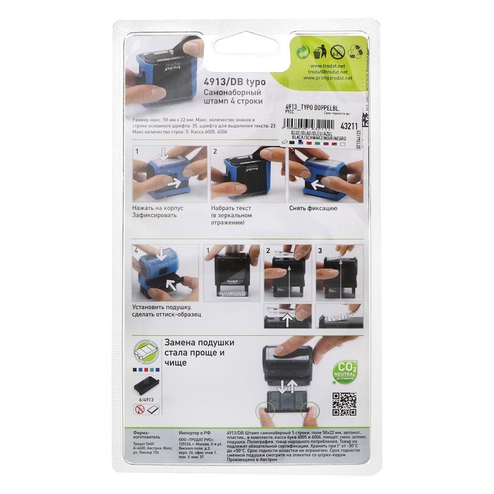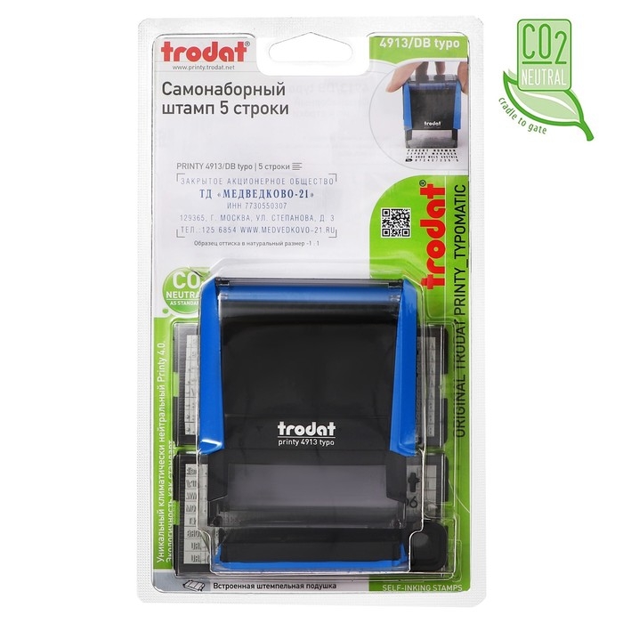 Штамп автоматический самонаборный Trodat PRINTY 4913 typo, 5 строки, 1 касса, 58 х 22 мм