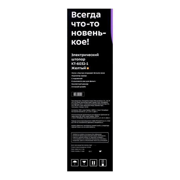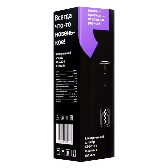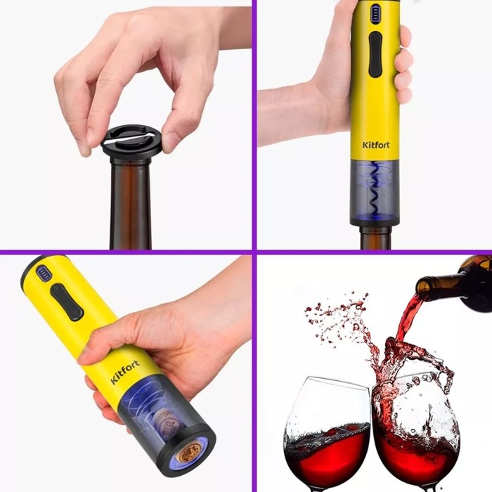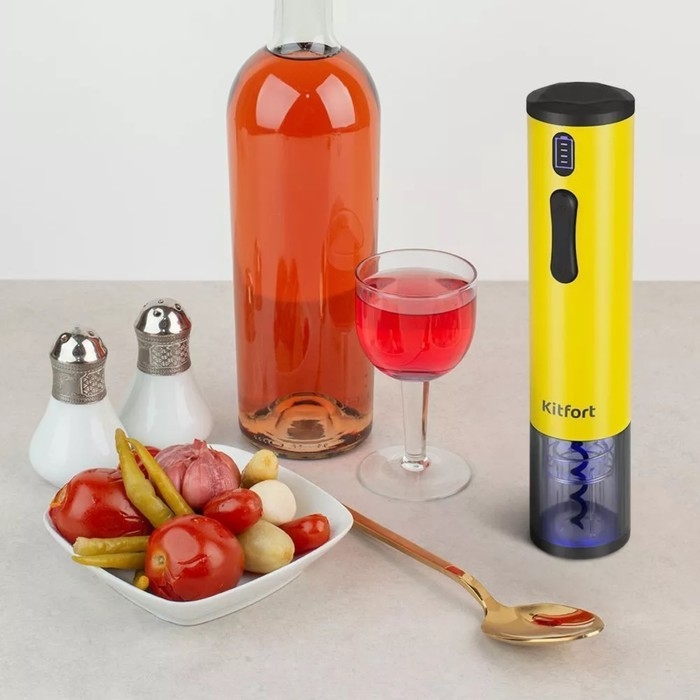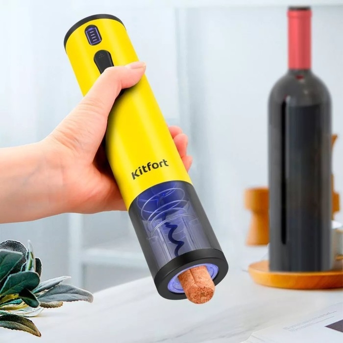 Штопор электрический Kitfort КТ-6032-1, 25 Вт, от АКБ, жёлтый