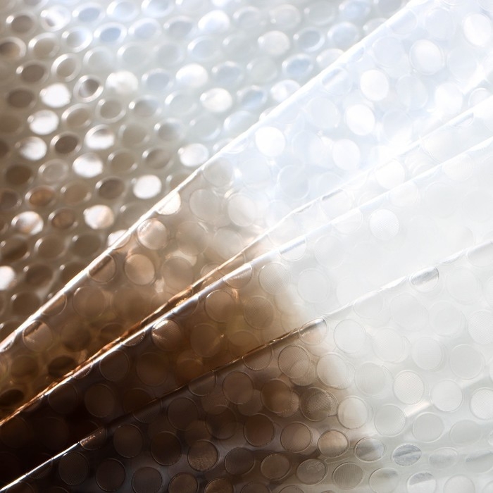 Материал EVA - совершенно нетоксичный полимерный материал, не обладающий запахом. Они совсем не впитывают влагу, поэтому можно не беспокоиться о том, что штору придется часто просушивать. Кроме того, в случае необходимости их можно аккуратно укоротить с помощью самых обычных ножниц — края не потребуют дополнительной обработки. Да и в уходе они неприхотливы — их достаточно протирать губкой, смоченной в мыльном растворе.