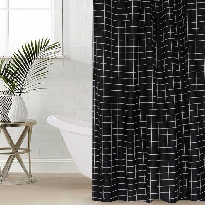 Штора для ванной Этель "Клетка", цв. чёрный, 180х180 см, полиэстер