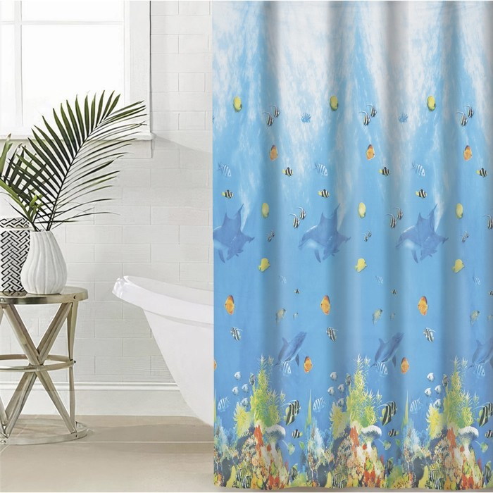 Штора для ванной комнаты Доляна «Рыбки», 180×180 см, PEVA