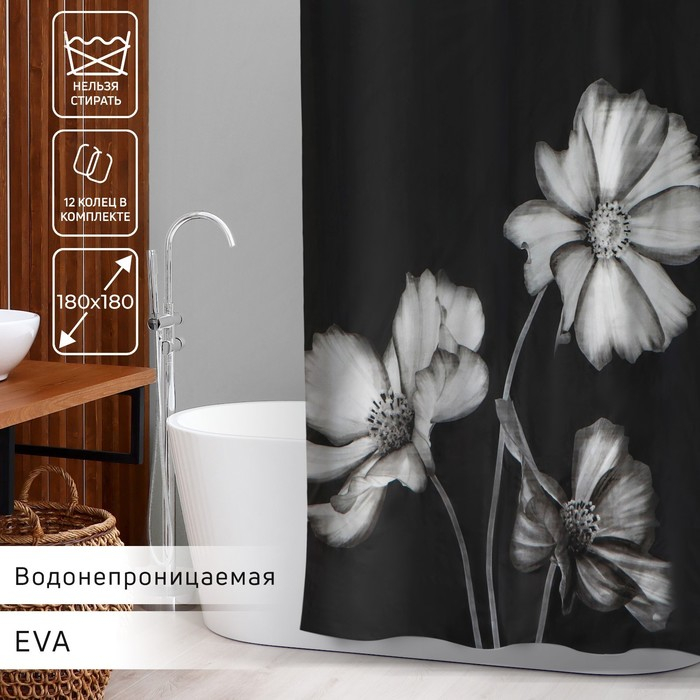Штора для ванны Доляна «Герберы», 180×180 см, EVA