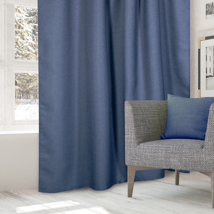 Штора портьерная "Этель" 135х270 см Натура голубой, б/держателя 100% п/э