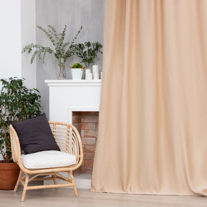 Штора портьерная Этель "Фактура"цв.молочный,на шторн.ленте 145*265 см,100% п/э