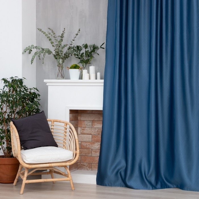 Штора портьерная Этель "Штрихи" цвет синий, на люверсах 250х265 см, 100% п/э