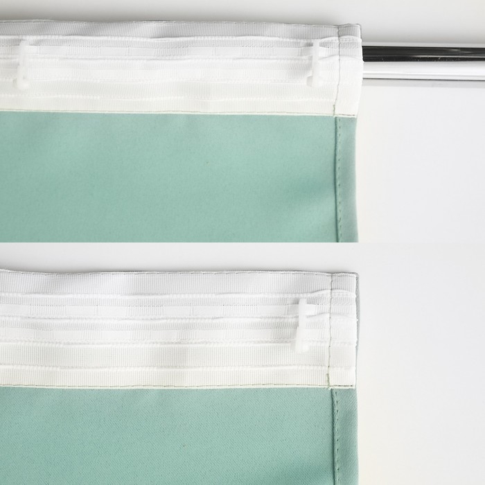 К портьерам пришита универсальная шторная лента. Возможно крепление на крючки и трубу диаметром до 3 см. С помощью специальных шнуров в ленте можно создать аккуратные, ровные складки.