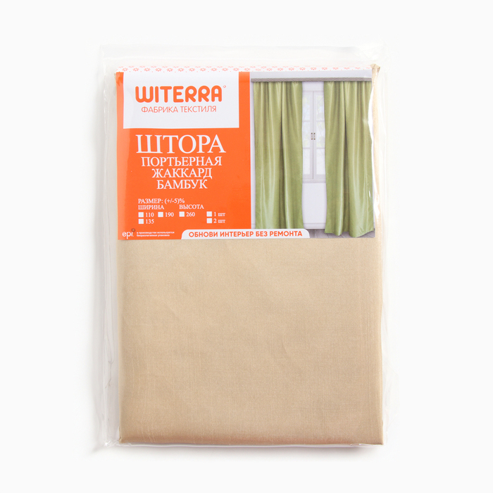 Штора портьерная жаккард Witerra Бамбук 135х260см, св.-бежевый, пэ 100%