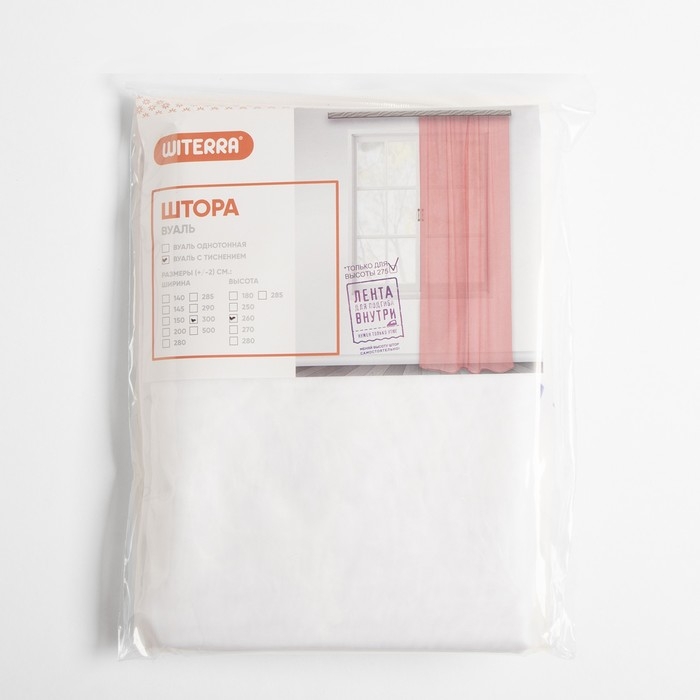 Штора-тюль для кухни Witerra с тиснением вензель 140х145см, белый, вуаль, пэ100%