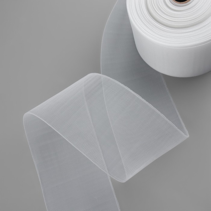 Шторная лента фиксированная сборка, органза, 10 см, 50 ± 1 м, цвет прозрачный