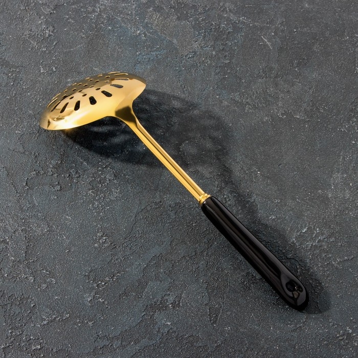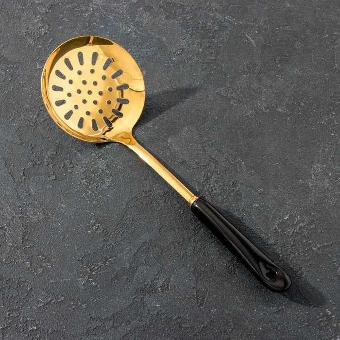 Шумовка из нержавеющей стали Base, h=35 см, цвет ручки чёрный, цвет металла золотой