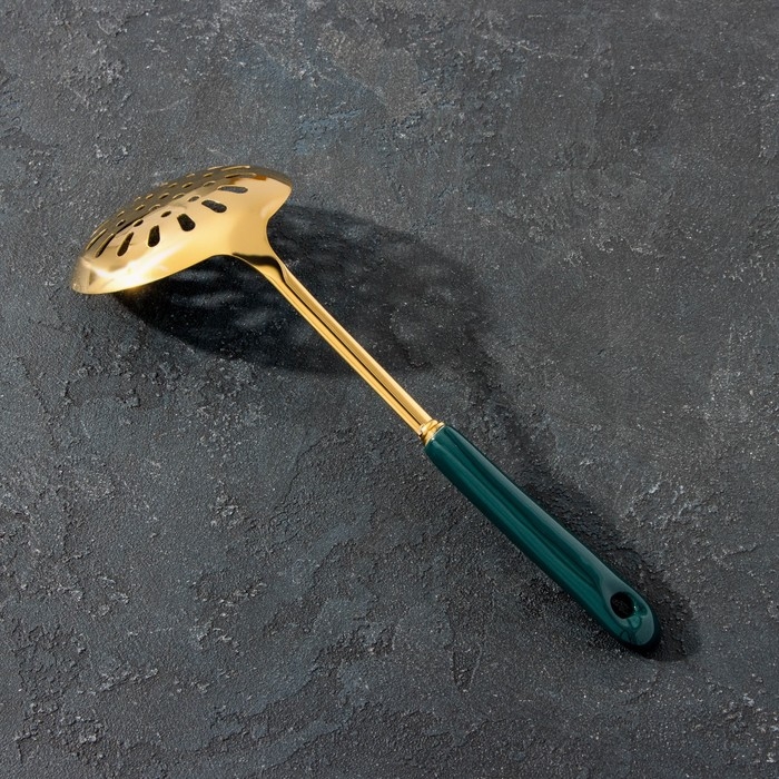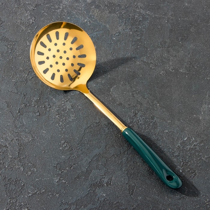 Шумовка из нержавеющей стали Base, h=35 см, цвет ручки зелёный, цвет металла золотой
