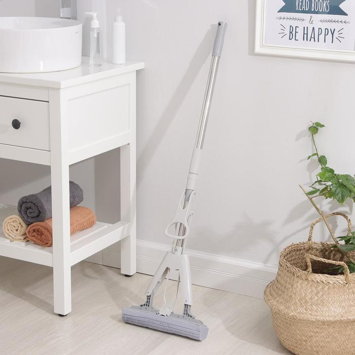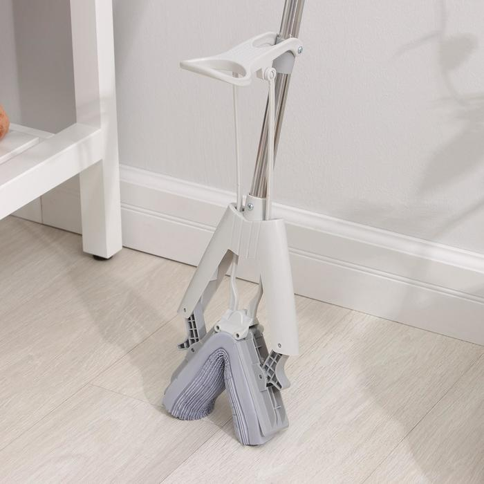 Поддержание чистоты в доме — важная задача. Швабра со складным ожимом и телескопической ручкой значительно облегчит уборку. Вы сможете менять насадки по мере необходимости. Отжим работает следующим образом: потяните на себя рычаг и удалите лишнюю влагу, благодаря этому простому действию ваши руки останутся сухими.