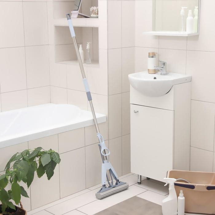 Швабра для мытья пола PVA Доляна, со складным отжимом, насадка 6×28 см, телескопическая стальная ручка 105(135) см