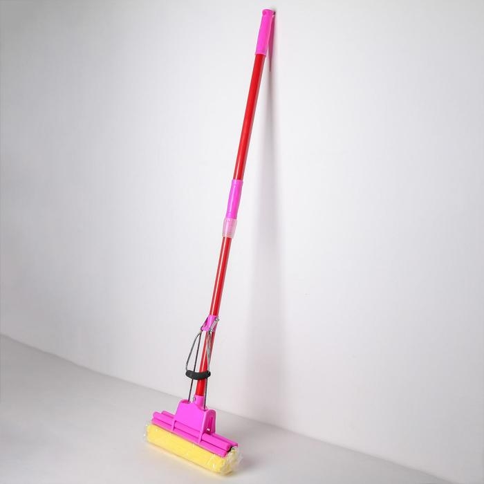 Швабра для мытья пола с двойным роликовым отжимом Доляна, насадка ПВА 28×6 см, телескопическая ручка 96-119 см, цвет МИКС